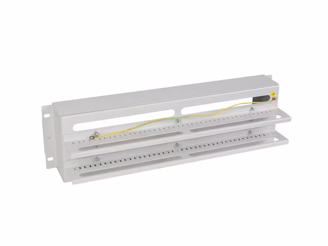 Voltage distribution panel in standard 19" size and 3U height. It is equipped with a TS-35 DIN rail, cover, cable organizer and grounding to meet any requirements.