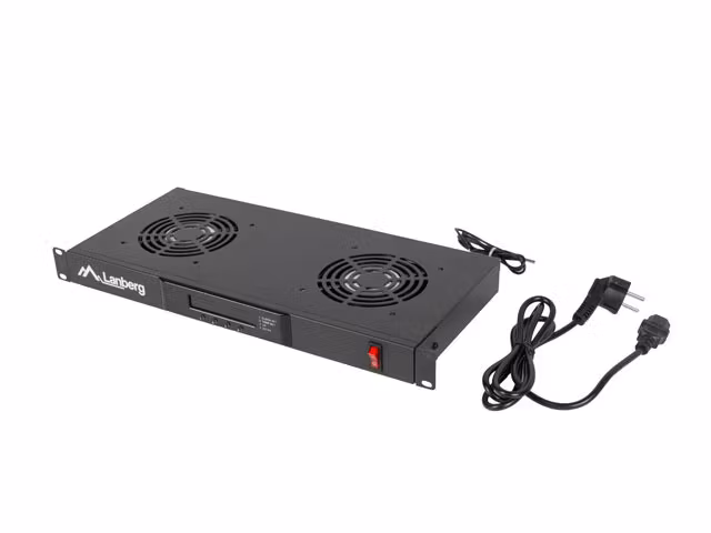 Lanberg's horizontal ventilation panel 1U 230V with LCD and 2 fans + thermostat; designed for 19" cabinets.
