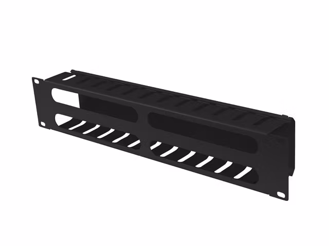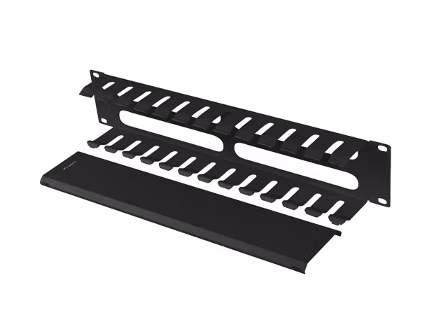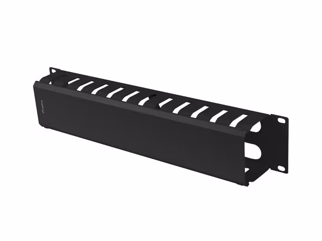 Cable organizer 2U type A Lanberg, suitable for19" rack cabinets. The organizer is equipped with cable holes and a plug.