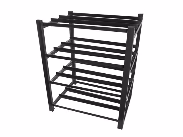 The rack of modular design for self-assembly is packed in 2 flat cardboard boxes, facilitating transportation and allowing quick and easy on-site installation.