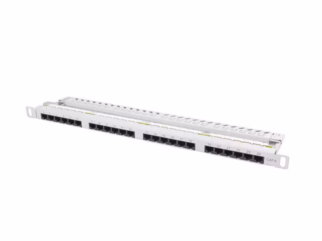 It is a passive part of structured cabling used for termination and organization of twisted-pair cables within 19" rack cabinets. Patch panels is equipped with 24 unshielded RJ-45 ports category 6.