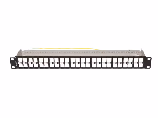 Patch panel can be quickly and simply staffed with RJ45, RJ11, RJ12 network keystones as well as audio-video-data keystones such as HDMI, USB, F, BNC, etc. The product is made of galvanized steel which fully gives compatibility with shielded cables and keystone modules.