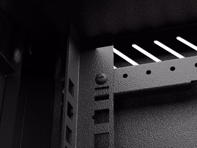 WF11 server cabinets provide efficient cooling thanks to an optimized ventilation system. The new, modified design allows the fan to be mounted without taking up space allocated for cabinet equipment, unlike the earlier WF10 series. Ventilation holes in the ceiling and bottom panels mean optimal temperature conditions inside the cabinet, which translates into reliability and longevity of stored equipment.