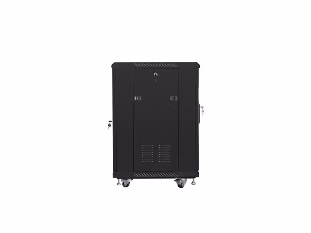 Assembled freestanding Lanberg cabinet FA01-6615-12B, is a solution designed to expand networks, installation of cabling and equipment in size 19” with max. 800kg. loading capacity.