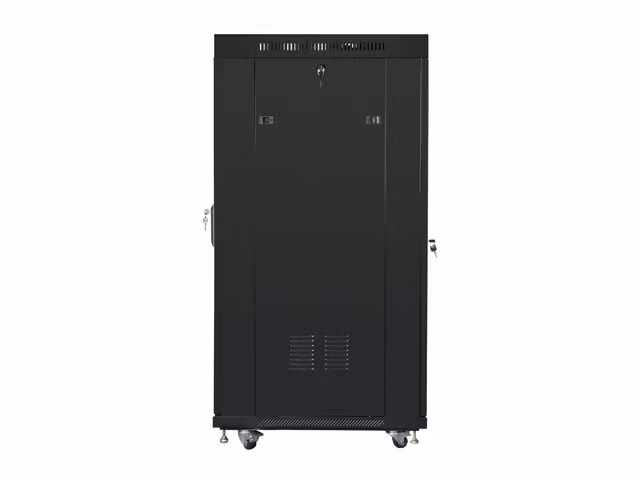 - Packaging includes: Mounting accessories, front and rear door lock, two side panel locks, 20 M6 screws, 2x vertical cable organizers, 4x casters, 4x feet.