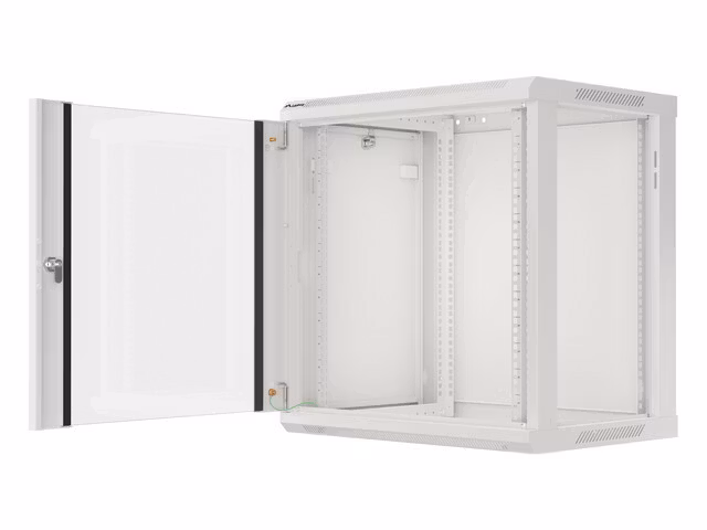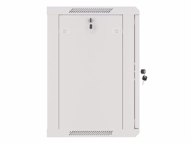 Wall-mount, single section Lanberg cabinet WF01-6412-10S is a solution designed to expand networks, installation of cabling and equipment in size 19” with max. 60kg. loading capacity. It can be used in networks, server rooms, small and medium businesses. It can also work in low voltage systems such as cable television networks, alarm systems, fire protection systems and access control systems, CCTV and IP surveillance. Appropriate design allows simple, self-assembly. Cabinet is characterized by IP20 degree of protection, opening front door with possibility of rotate to 180° with lock, removable side panels (locks included). The cabinet has cable entry panel on top and bottom cover. This product is made of high grade cold rolled steel. Cabinet structure for self-assembly is in flat pack which facilitates transport. In addition, parcel includes additional accessories for rail mounts, M6 cage nuts and blank entry panels.