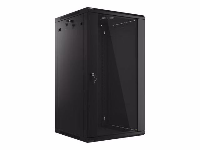 Wall mount, single section Lanberg cabinet WF01-6622-10B is a solution designed to expand networks, installation of cabling and equipment in size 19” with max. 60kg. loading capacity. It can be used in networks, server rooms, small and medium businesses. It can also work in low voltage systems such as cable television networks, alarm systems, fire protection systems and access control systems, CCTV and IP surveillance. Appropriate design allows simple, self-assembly. Cabinet is characterized by IP20 degree of protection, opening front door with possibility of rotate to 180° with lock, removable side panels (locks included). The cabinet has cable entry panel on top and bottom cover. This product is made of high grade cold rolled steel. Cabinet structure for self-assembly is in flat pack which facilitates transport. In addition, parcel includes additional accessories for rail mounts, M6 cage nuts and blank entry panels.