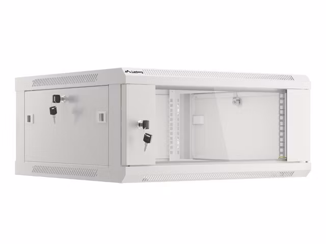 Wall mount, single section Lanberg cabinet WF01-6604-10S is a solution designed to expand networks, installation of cabling and equipment in size 19” with max. 60kg. loading capacity. It can be used in networks, server rooms, small and medium businesses. It can also work in low voltage systems such as cable television networks, alarm systems, fire protection systems and access control systems, CCTV and IP surveillance. Appropriate design allows simple, self-assembly. Cabinet is characterized by IP20 degree of protection, opening front door with possibility of rotate to 180° with lock, removable side panels (locks included). The cabinet has cable entry panel on top and bottom cover. This product is made of high grade cold rolled steel. Cabinet structure for self-assembly is in flat pack which facilitates transport. In addition, parcel includes additional accessories for rail mounts, M6 cage nuts and blank entry panels.