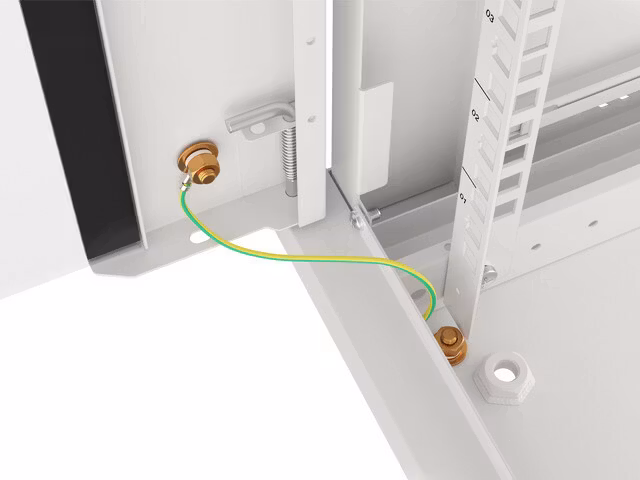 - Included: Accessory bag, earth kit (pins, grounding cable, nuts and mounting washers), front door lock, two side panels with locks, 12 cage nuts M6.
