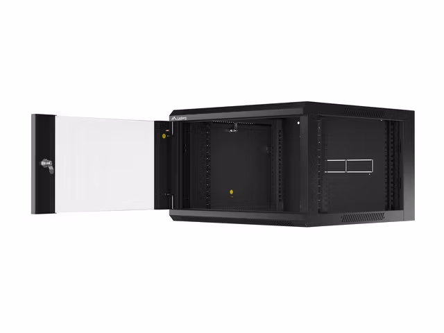VERSATILITY, SIMPLICITY AND VARIETY OF APPLICATIONSThe WFFA series, 6U, single-section, wall-mount, black, 570 x 600 mm cabinet, is the perfect solution for ICT network, cabling, and equipment implementation compliant with 19" RACK standard. This cabinet series is designed for use in every company, home, and low-current installations such as cable TV networks, alarm/fire systems, access control, and video surveillance (IP, Datacenter, and Big Data) solutions. The cabinet, utilizing the latest solutions, allows the implementation of networks according to the installation standards. It provides orderly and easy access to devices installed inside. Responsible for the structure of the cabinet, is an up-to-date and modernized sturdy frame. This networking product is equipped with a glazed front door with a tempered glass and latch-mounted side covers made of steel. The product is designed for indoor use only. | ![]() |