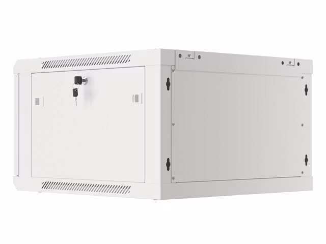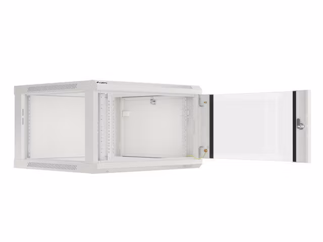 Wall mount, single section Lanberg cabinet WF01-6606-10S is a solution designed to expand networks, installation of cabling and equipment in size 19” with max. 60kg. loading capacity. It can be used in networks, server rooms, small and medium businesses. It can also work in low voltage systems such as cable television networks, alarm systems, fire protection systems and access control systems, CCTV and IP surveillance. Appropriate design allows simple, self-assembly. Cabinet is characterized by IP20 degree of protection, opening front door with possibility of rotate to 180° with lock, removable side panels (locks included). The cabinet has cable entry panel on top and bottom cover. This product is made of high grade cold rolled steel. Cabinet structure for self-assembly is in flat pack which facilitates transport. In addition, parcel includes additional accessories for rail mounts, M6 cage nuts and blank entry panels.