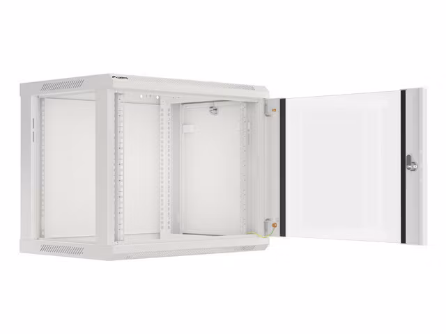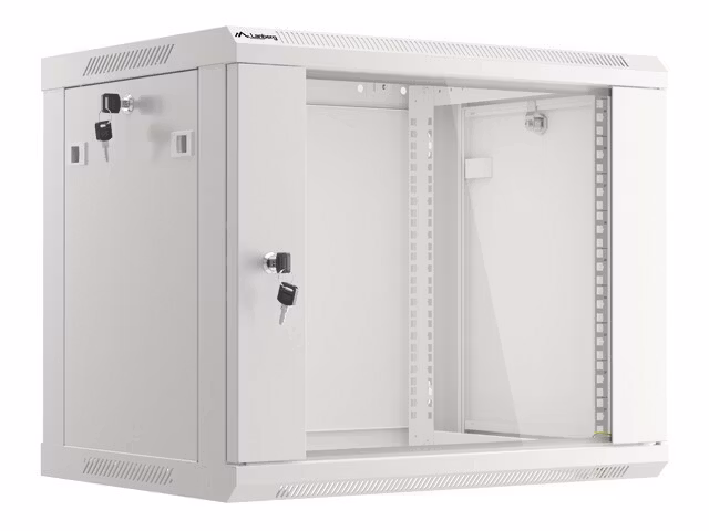 Wall mount, single section Lanberg cabinet WF01-6409-10S is a solution designed to expand networks, installation of cabling and equipment in size 19” with max. 60kg. loading capacity. It can be used in networks, server rooms, small and medium businesses. It can also work in low voltage systems such as cable television networks, alarm systems, fire protection systems and access control systems, CCTV and IP surveillance. Appropriate design allows simple, self-assembly. Cabinet is characterized by IP20 degree of protection, opening front door with possibility of rotate to 180° with lock, removable side panels (locks included). The cabinet has cable entry panel on top and bottom cover. This product is made of high grade cold rolled steel. Cabinet structure for self-assembly is in flat pack which facilitates transport. In addition, parcel includes additional accessories for rail mounts, M6 cage nuts and blank entry panels.