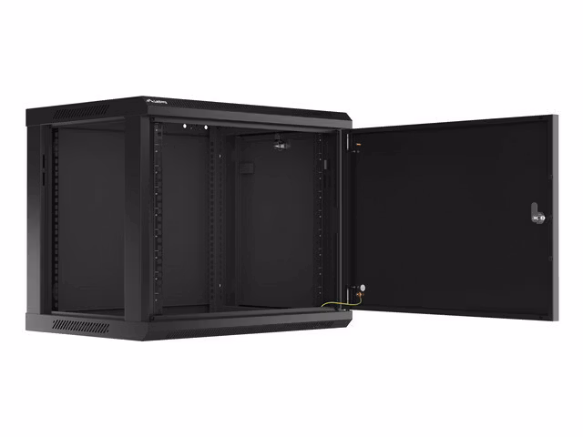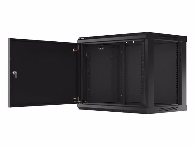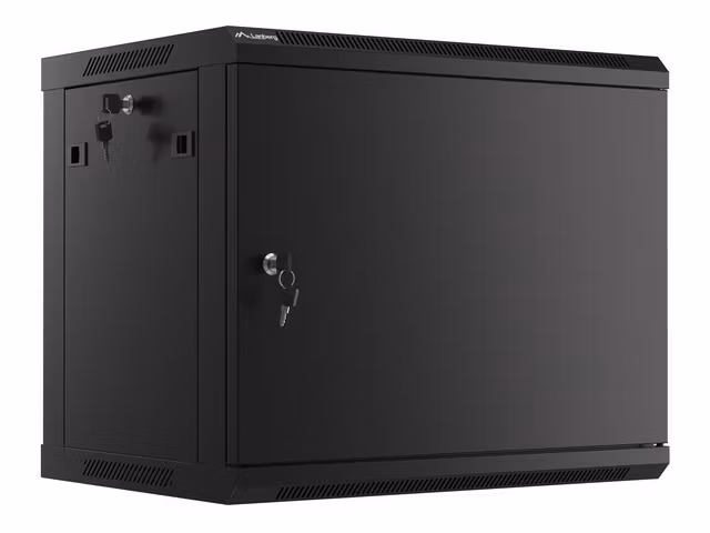 Wall mount, single section Lanberg cabinet WF01-6409-00B is a solution designed to expand networks, installation of cabling and equipment in size 19” with max. 60kg. loading capacity. It can be used in networks, server rooms, small and medium businesses. It can also work in low voltage systems such as cable television networks, alarm systems, fire protection systems and access control systems, CCTV and IP surveillance. Appropriate design allows simple, self-assembly. Cabinet is characterized by IP20 degree of protection, opening front door with possibility of rotate to 180° with lock, removable side panels (locks included). The cabinet has cable entry panel on top and bottom cover. This product is made of high grade cold rolled steel. Cabinet structure for self-assembly is in flat pack which facilitates transport. In addition, parcel includes additional accessories for rail mounts, M6 cage nuts and blank entry panels.