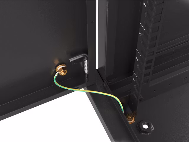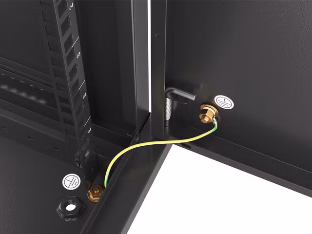 - Included: Accessory bag, earth kit (pins, grounding cable, nuts and mounting washers), front door lock, two side panels with locks, 12 cage nuts M6.