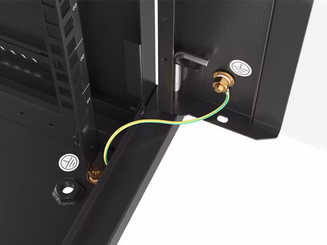 - Included: Accessory bag, earth kit (pins, grounding cable, nuts and mounting washers), front door lock, two side panels with locks, 12 cage nuts M6.