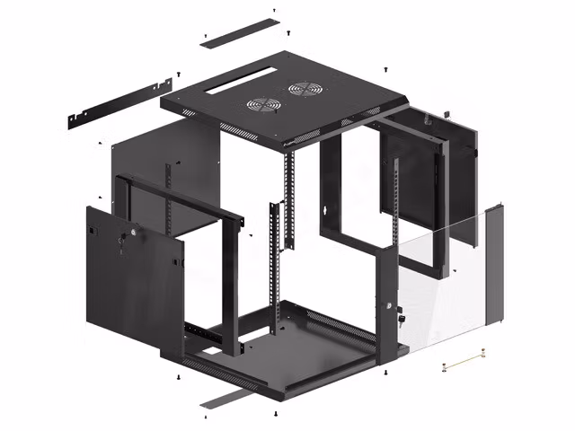 Wall mount, single section Lanberg cabinet WF01-6609-10B is a solution designed to expand networks, installation of cabling and equipment in size 19” with max. 60kg. loading capacity. It can be used in networks, server rooms, small and medium businesses. It can also work in low voltage systems such as cable television networks, alarm systems, fire protection systems and access control systems, CCTV and IP surveillance. Appropriate design allows simple, self-assembly. Cabinet is characterized by IP20 degree of protection, opening front door with possibility of rotate to 180° with lock, removable side panels (locks included). The cabinet has cable entry panel on top and bottom cover. This product is made of high grade cold rolled steel. Cabinet structure for self-assembly is in flat pack which facilitates transport. In addition, parcel includes additional accessories for rail mounts, M6 cage nuts and blank entry panels.
