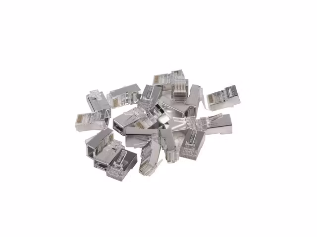 Set of 20 pcs of shielded pass through RJ-45 [8P8C] cat. 5E network plugs, intended mainly for FTP LAN cables.