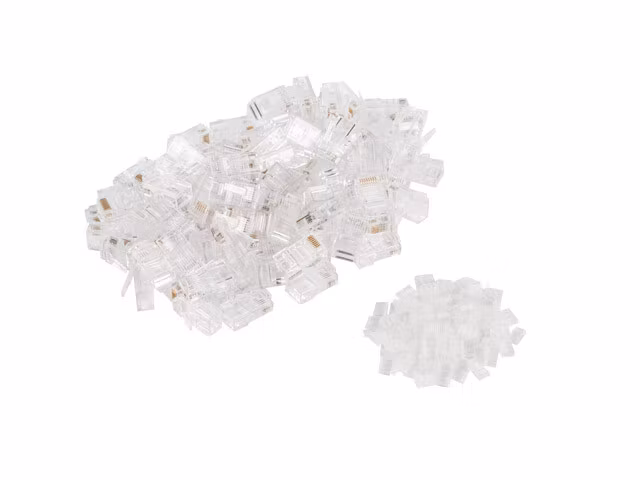 Set of 100 pcs of shielded RJ-45 [8P8C] Cat.6 network plugs, intended mainly for UTP LAN cables.